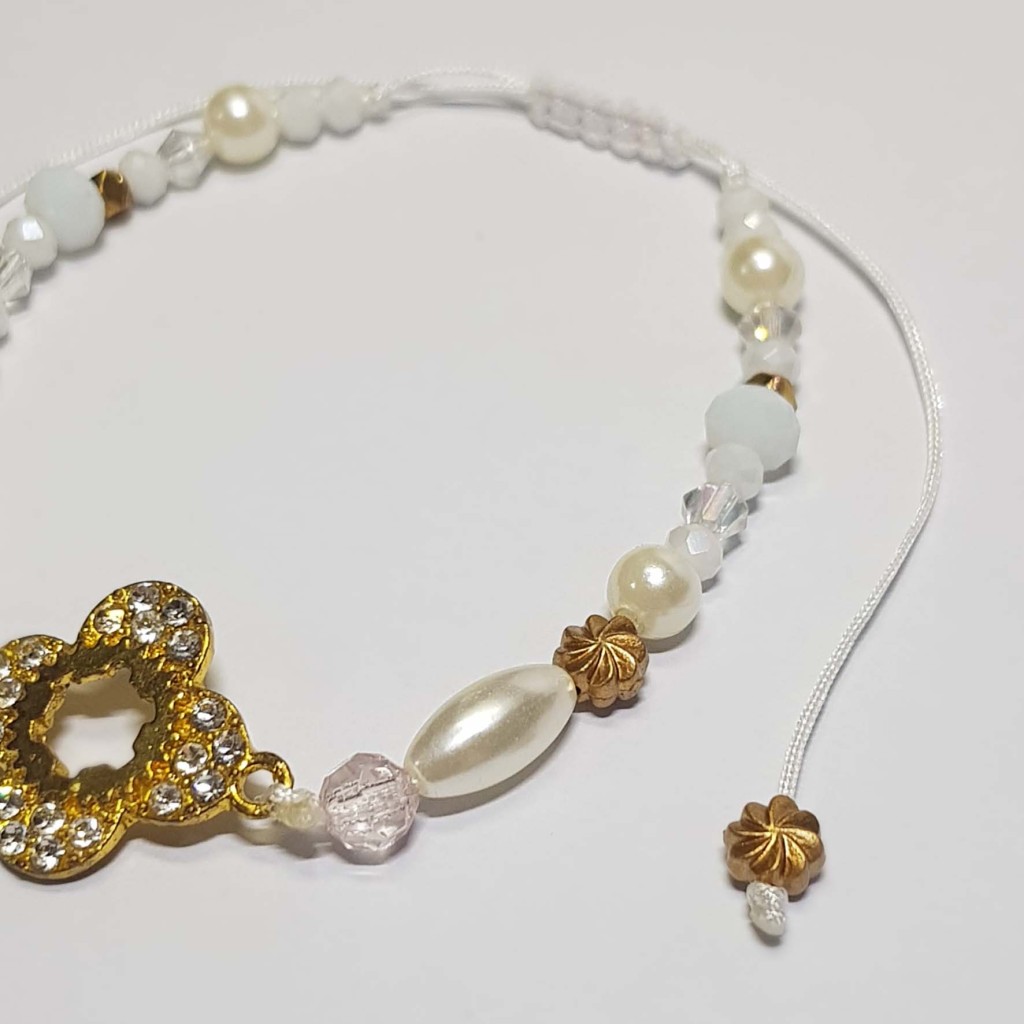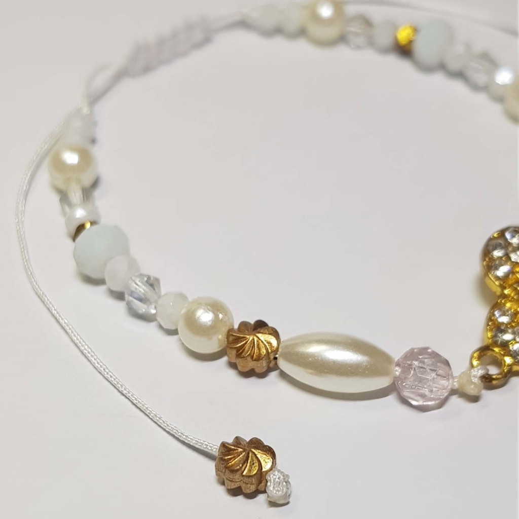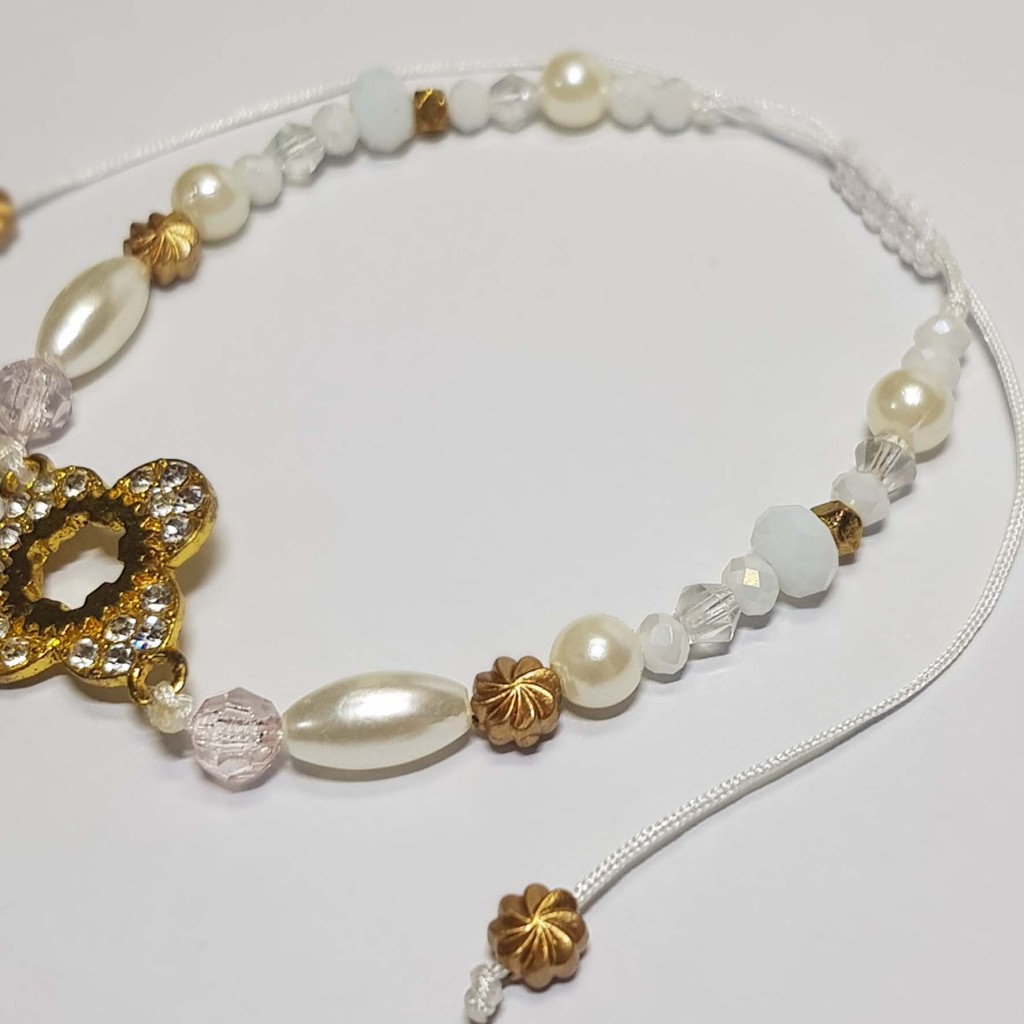 دستبند و پابند مرواریدی سفید طلایی مدل PBNDSRT