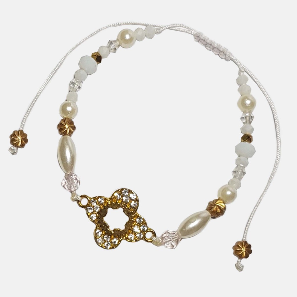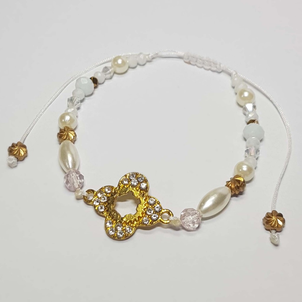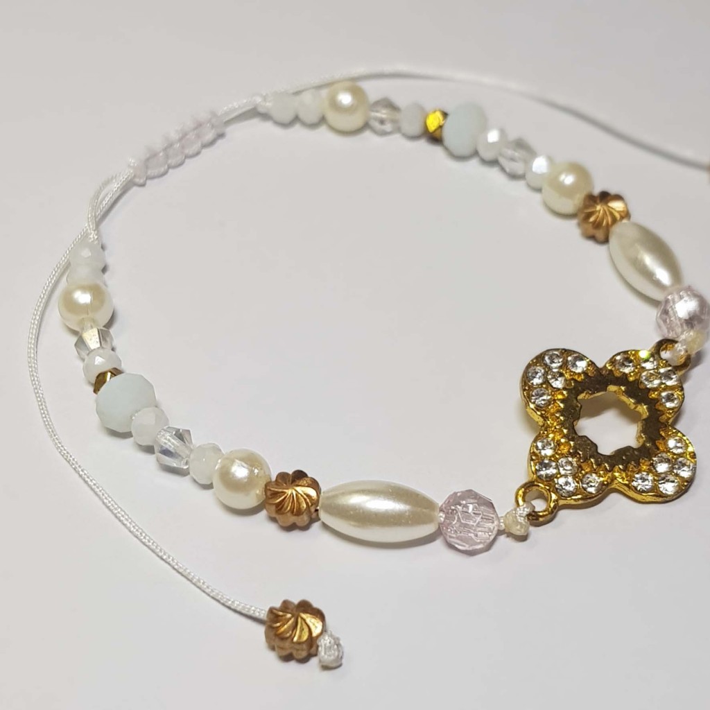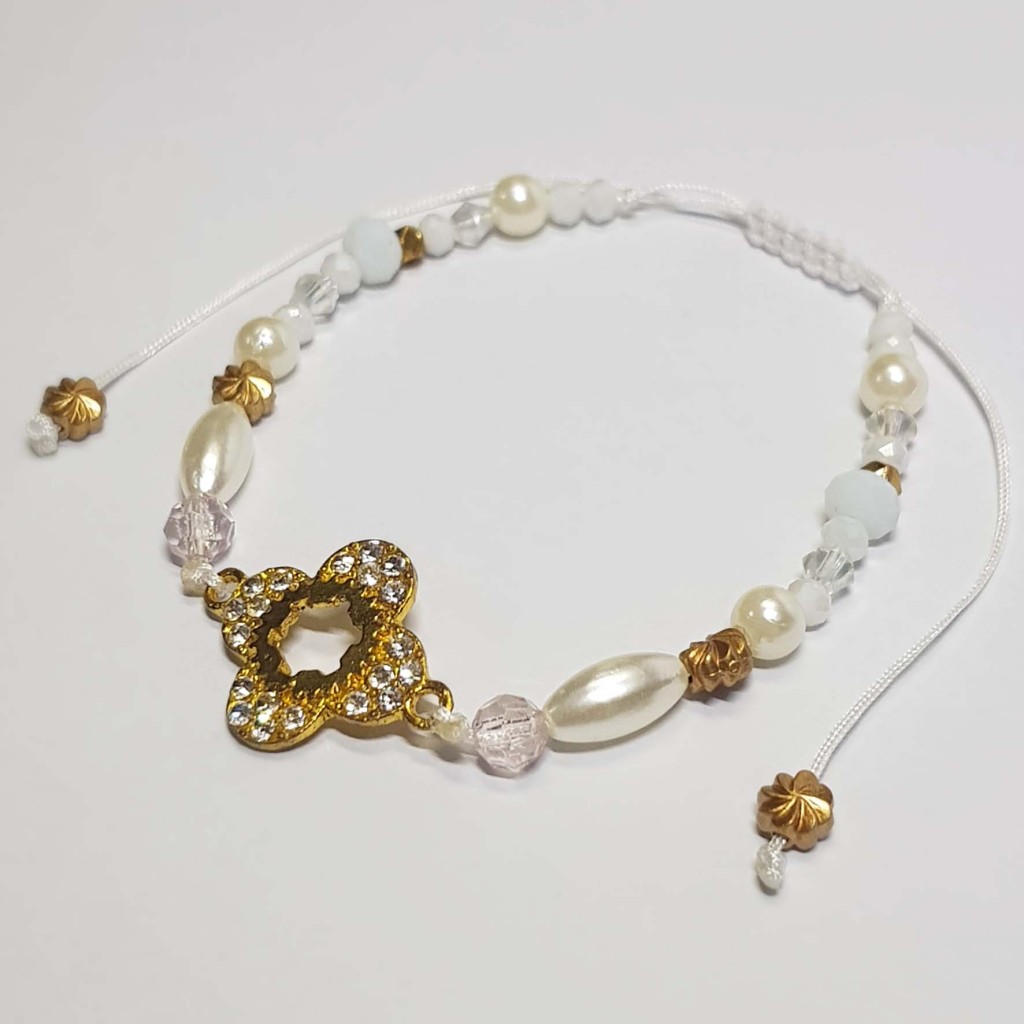 دستبند و پابند مرواریدی سفید طلایی مدل PBNDSRT