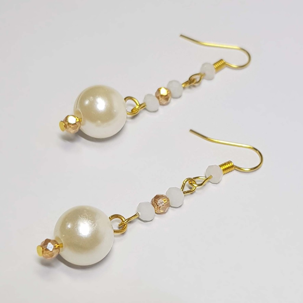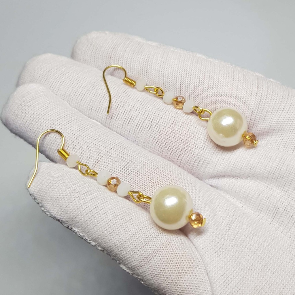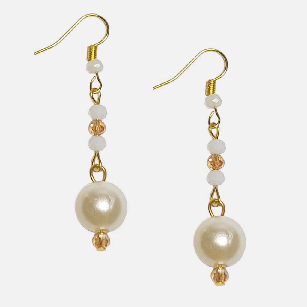 گوشواره مرواریدی کریستالی سفید طلایی مدل ERM2M