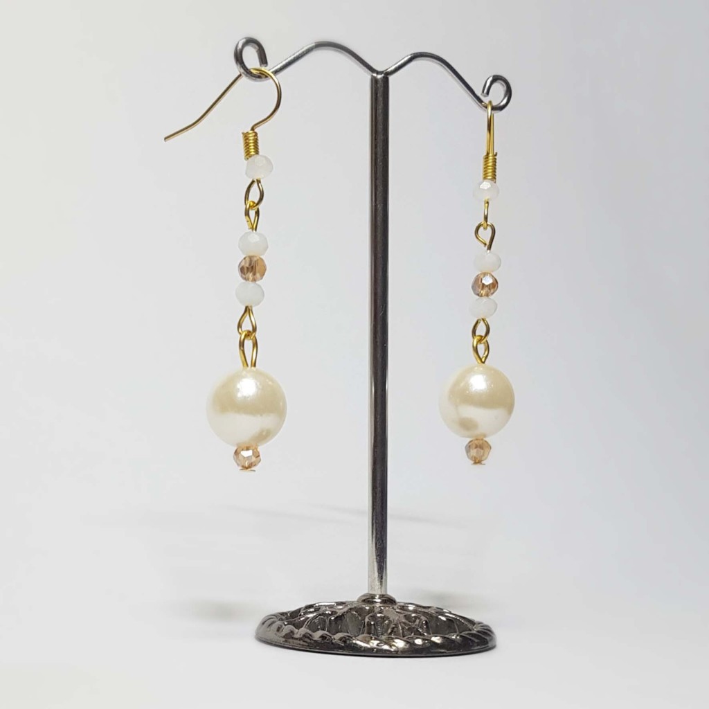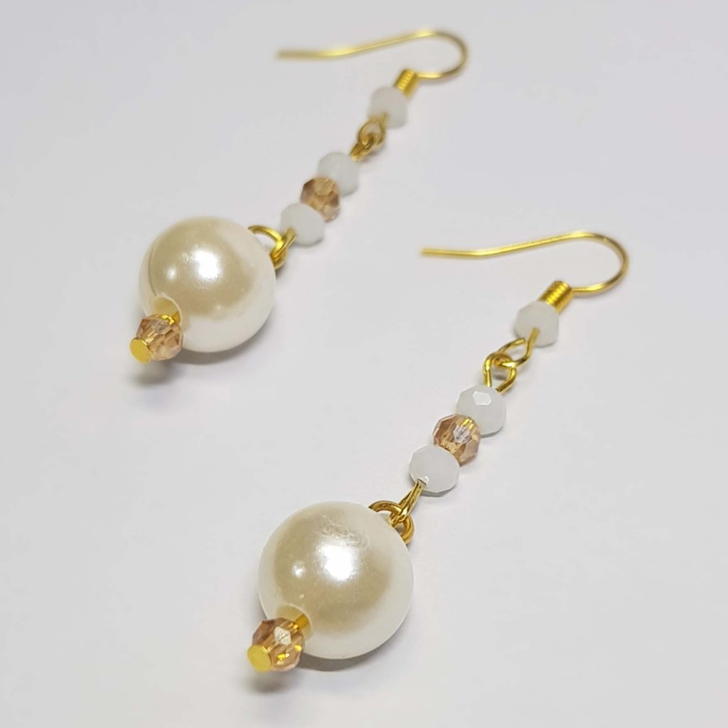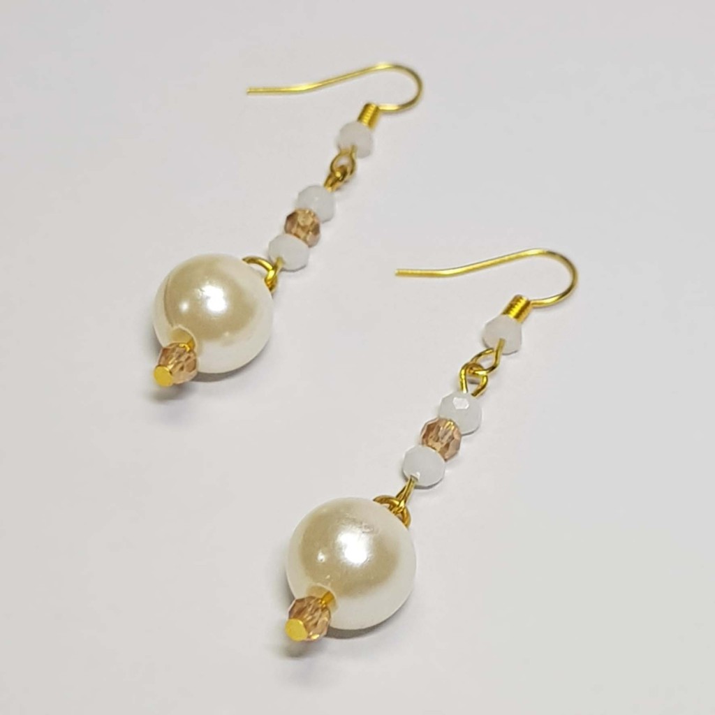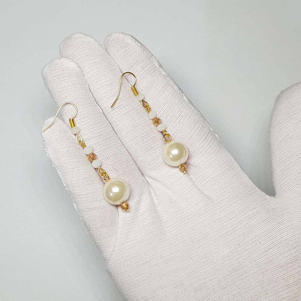 گوشواره مرواریدی کریستالی سفید طلایی مدل ERM2M