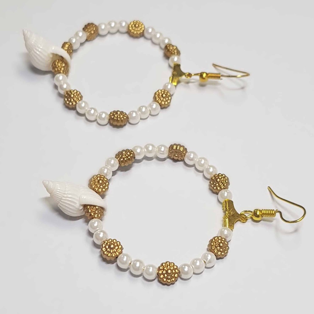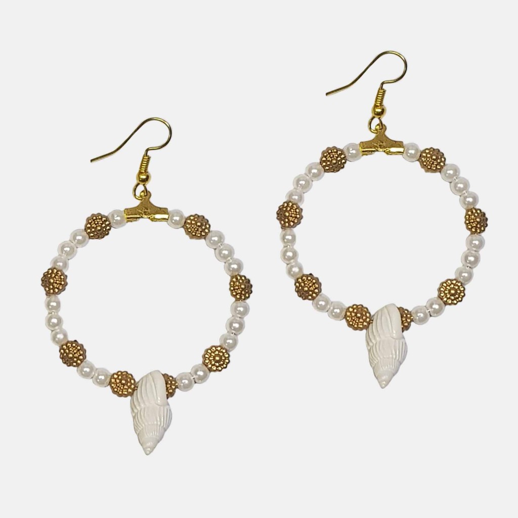گوشواره حلقه ای مروارید و صدف مدل ERMSDF