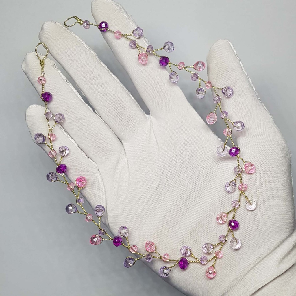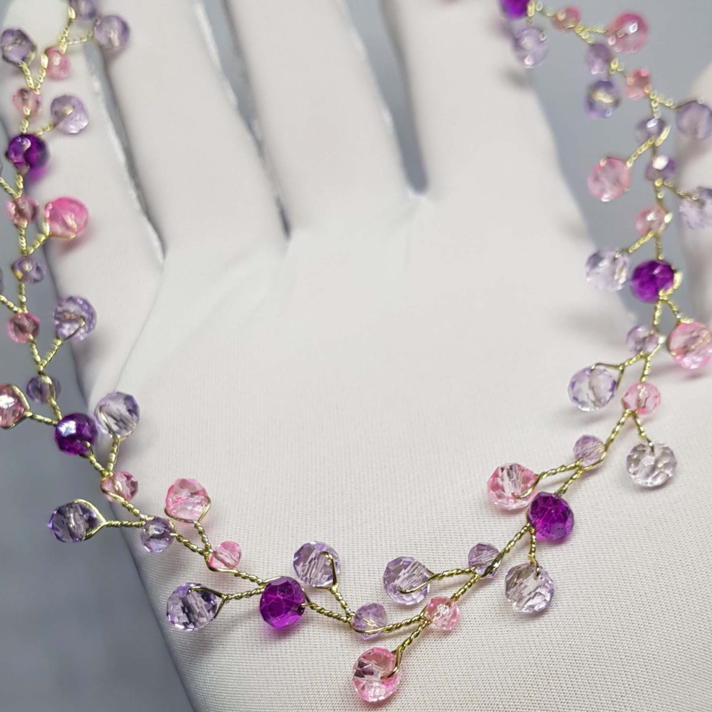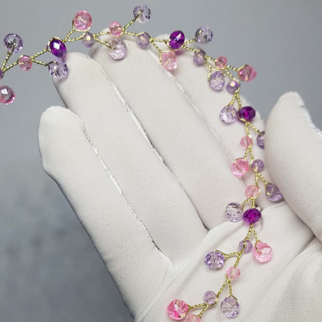 ریسه موی کریستالی بنفش صورتی مدل RS589