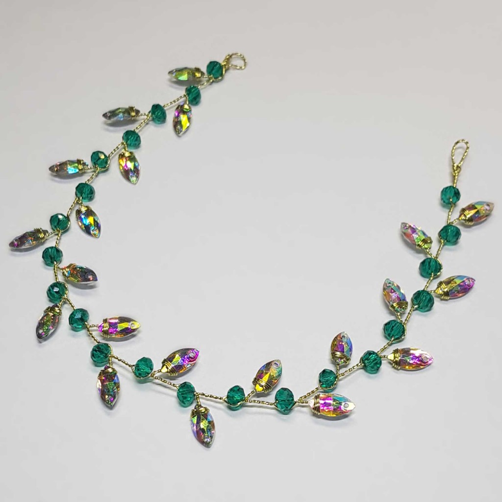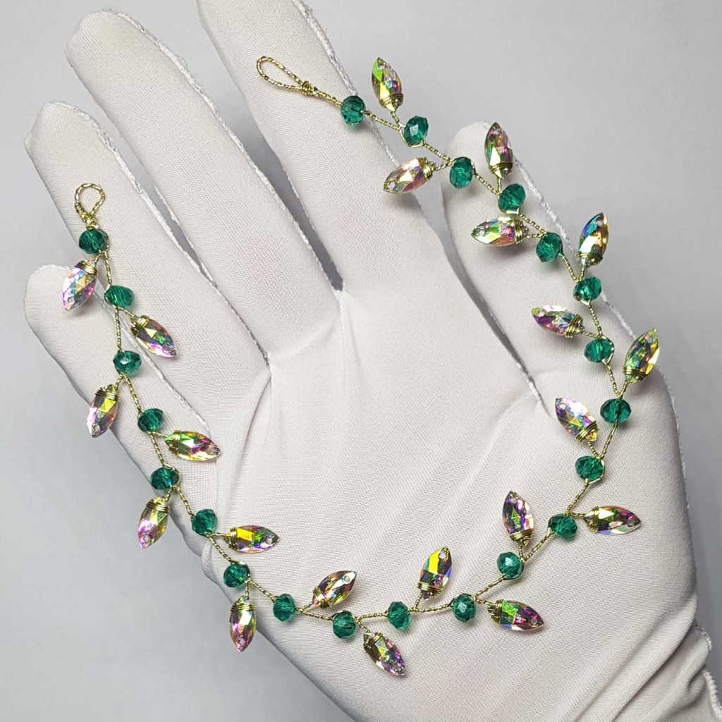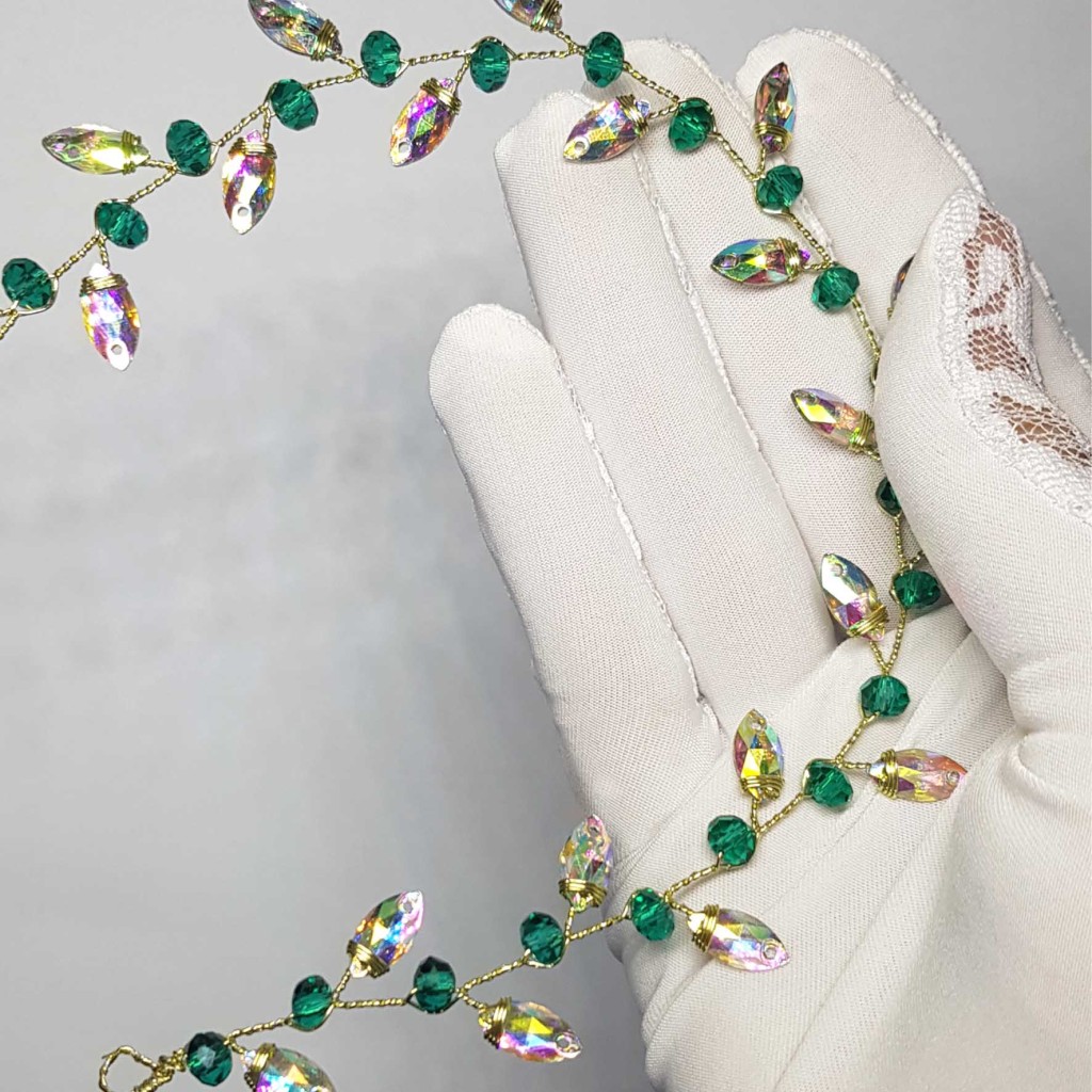 این محصول شامل یک عدد ریسه موی تماماً کریستال به رنگ سبز تیره است.