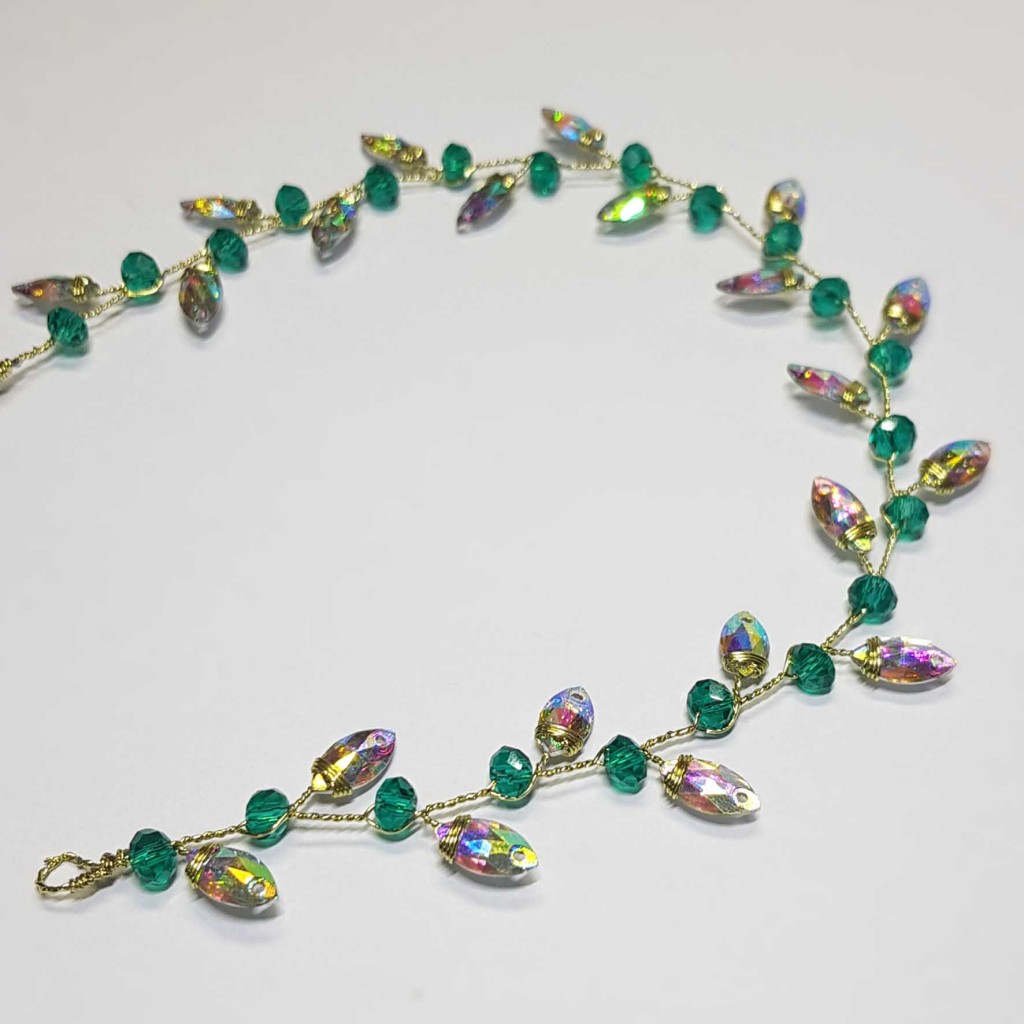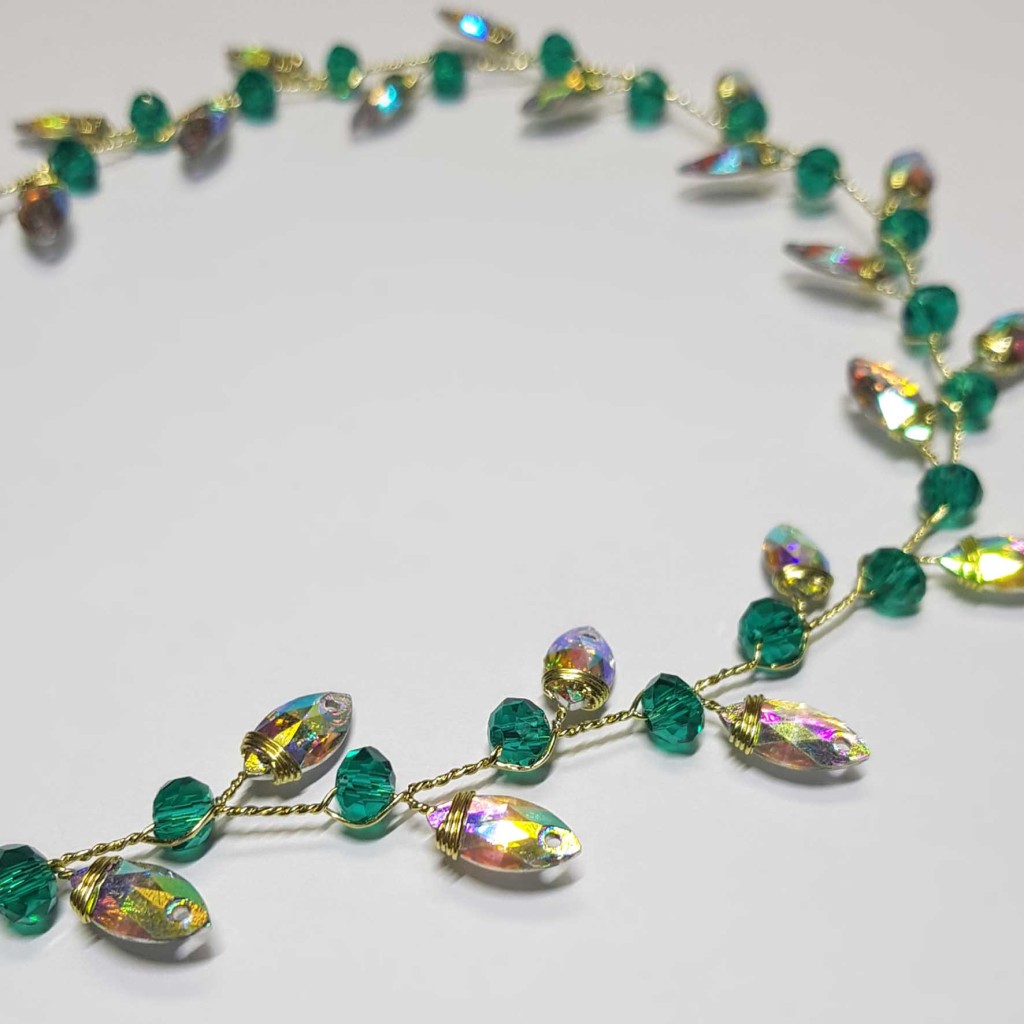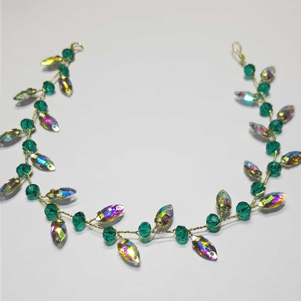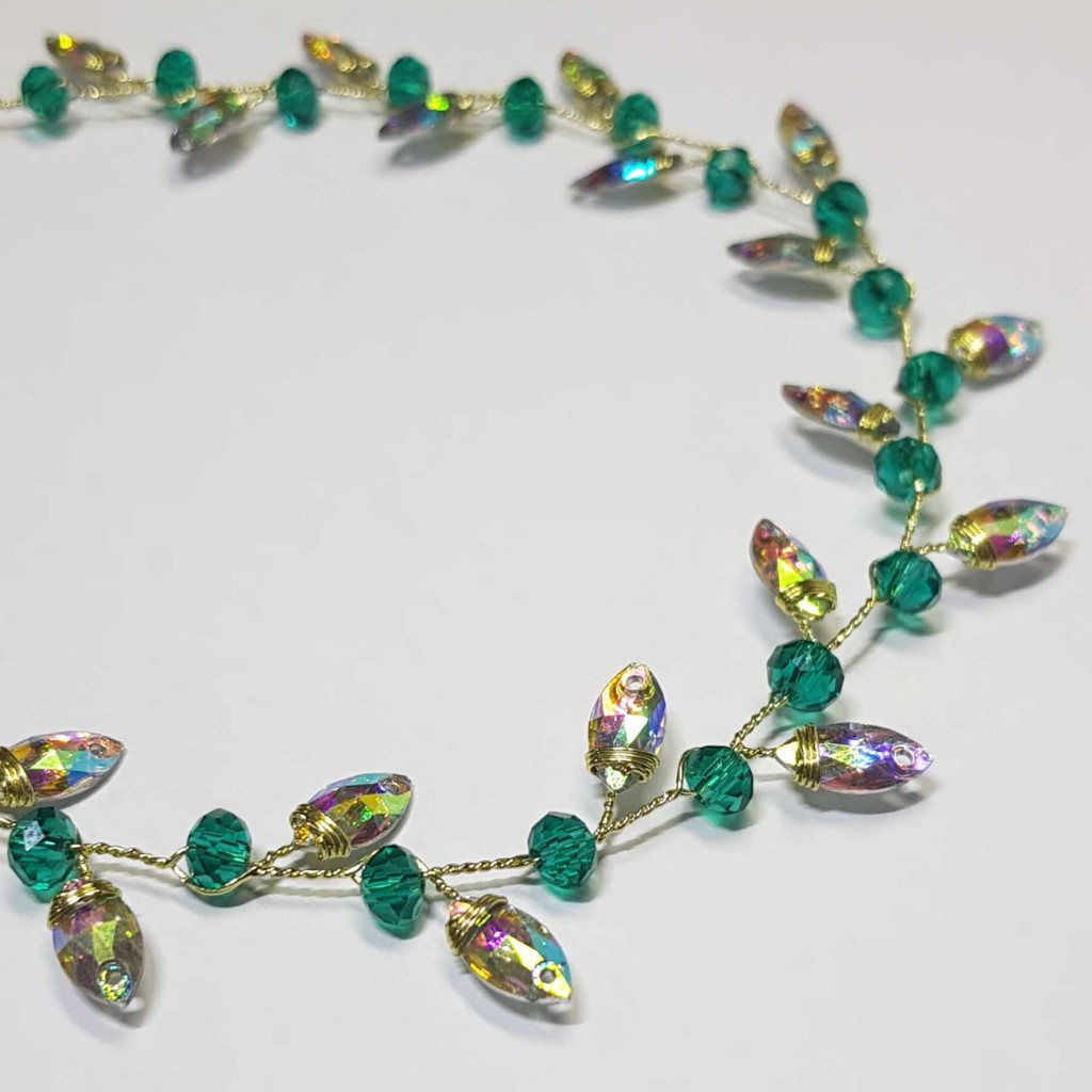 این محصول شامل یک عدد ریسه موی تماماً کریستال به رنگ سبز تیره است.