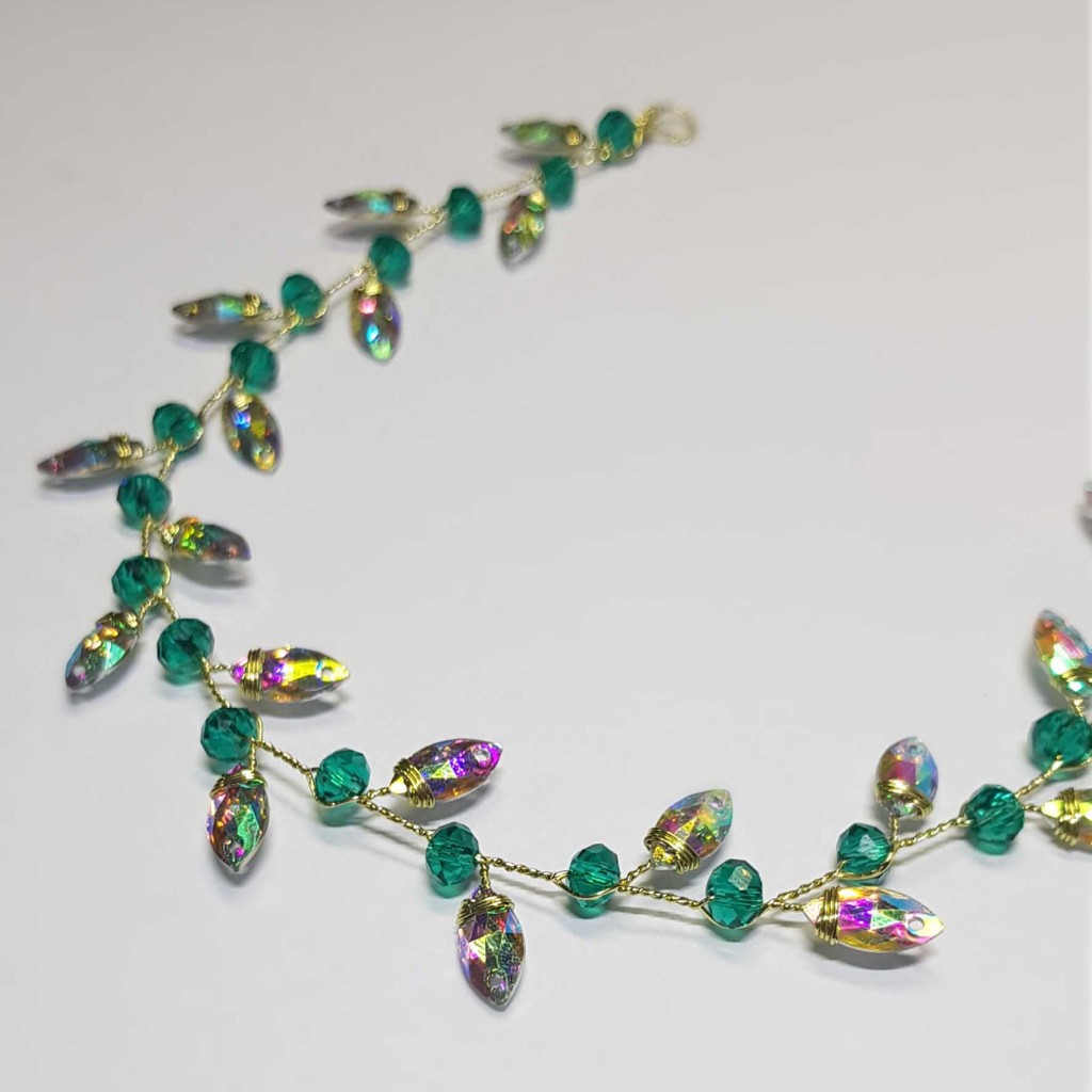 ریسه موی کریستالی سبز تیره و هفترنگ مدل RS99R