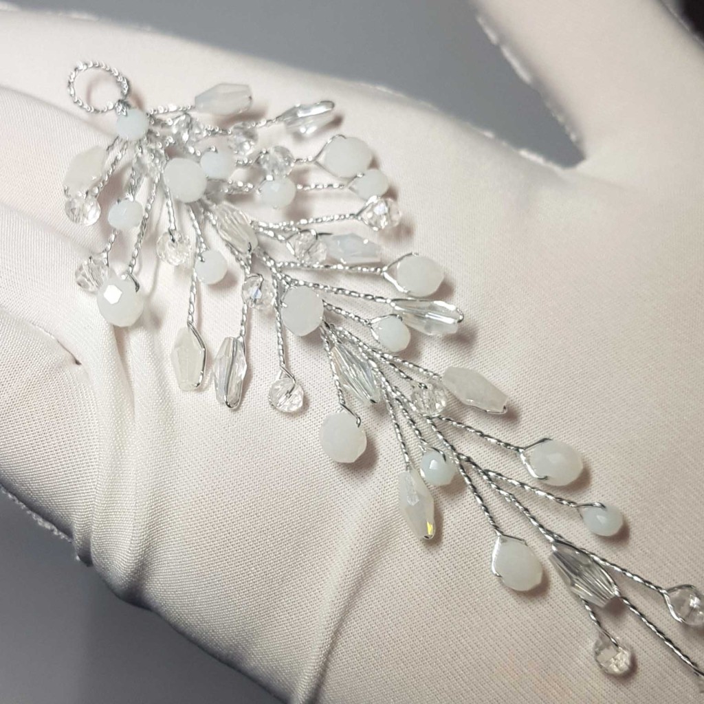 ریسه موی کریستالی بغل سری و کوتاه سفید نقره ای مدل RSHHS