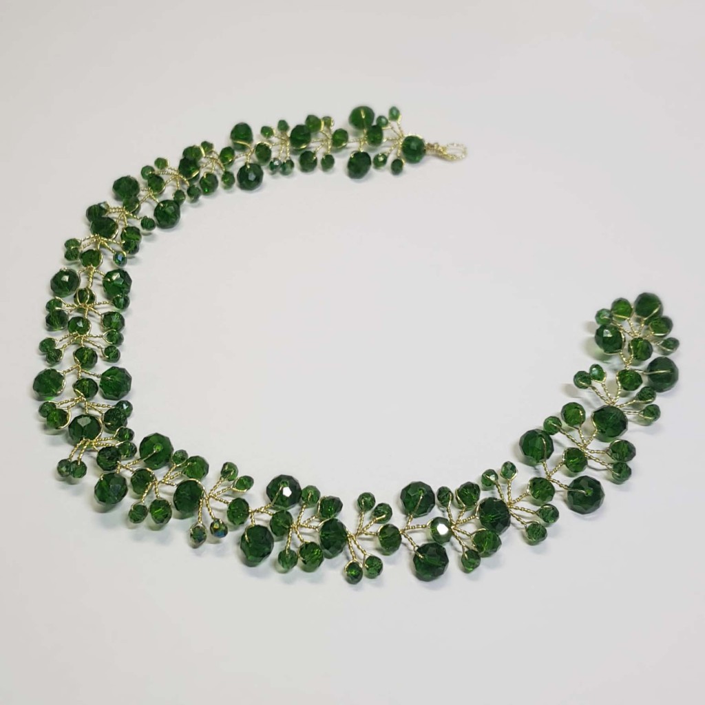 این محصول شامل یک عدد ریسه موی تماماً کریستال به رنگ سبز تیره است.