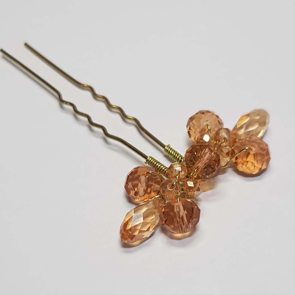 این محصول شامل 2عدد سنجاق شینیون با کریستال های کهربایی رنگ است.