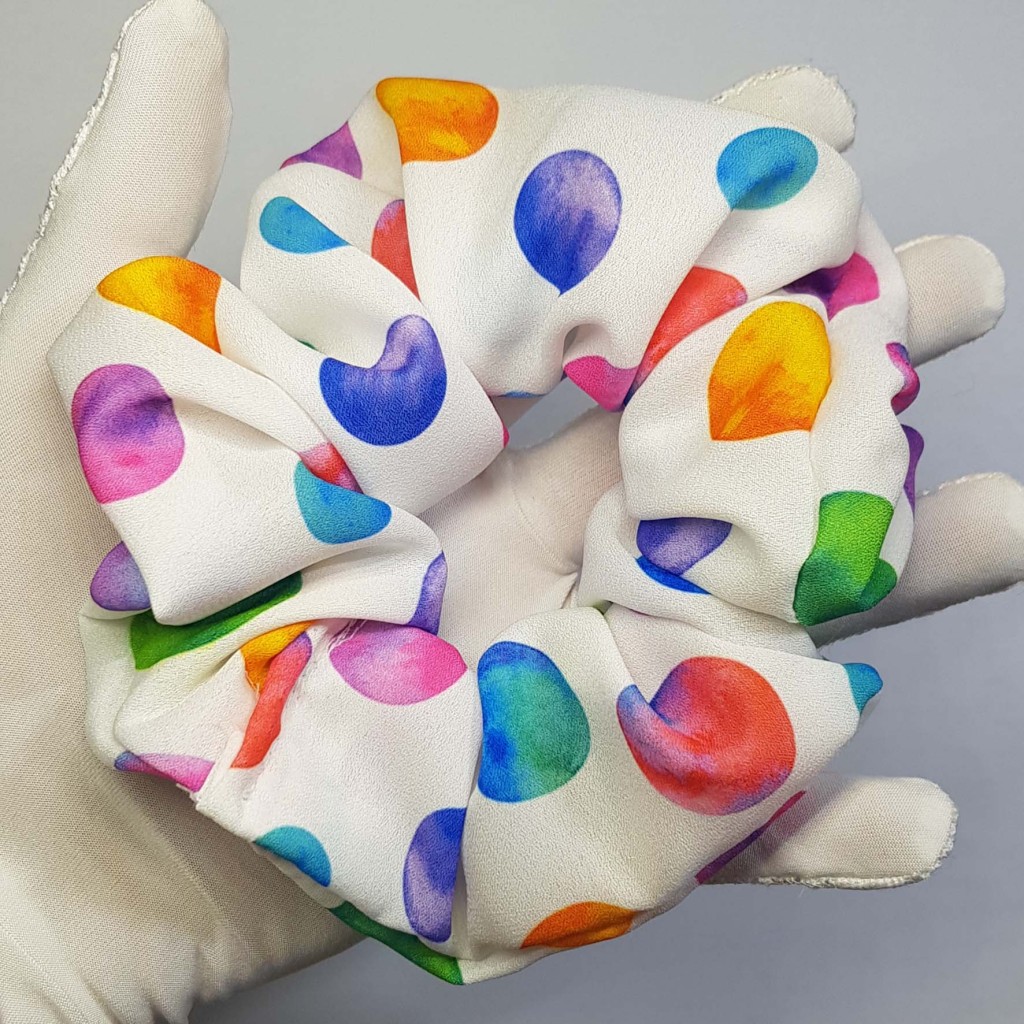 اسکرانچی کش موی سفید با دایره رنگی مدل SCGB