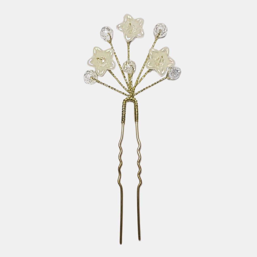 این محصول شامل یک عدد سنجاق شینیون با پایه سنجاق به رنگ طلایی است.