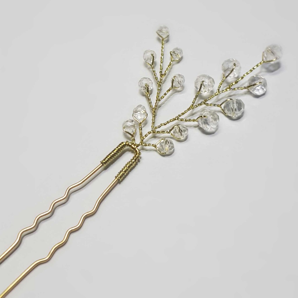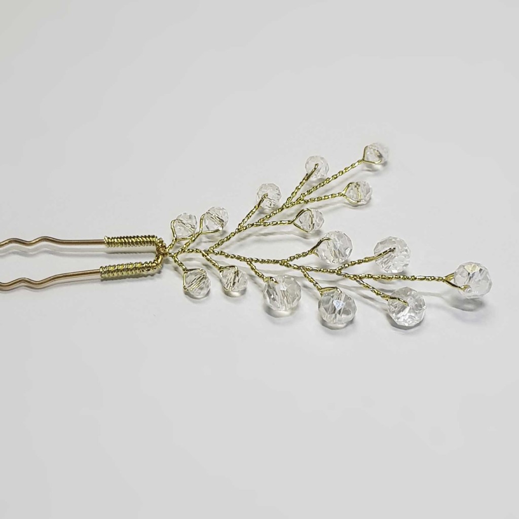 این محصول شامل یک عدد سنجاق شینیون با پایه سنجاق به رنگ طلایی است.