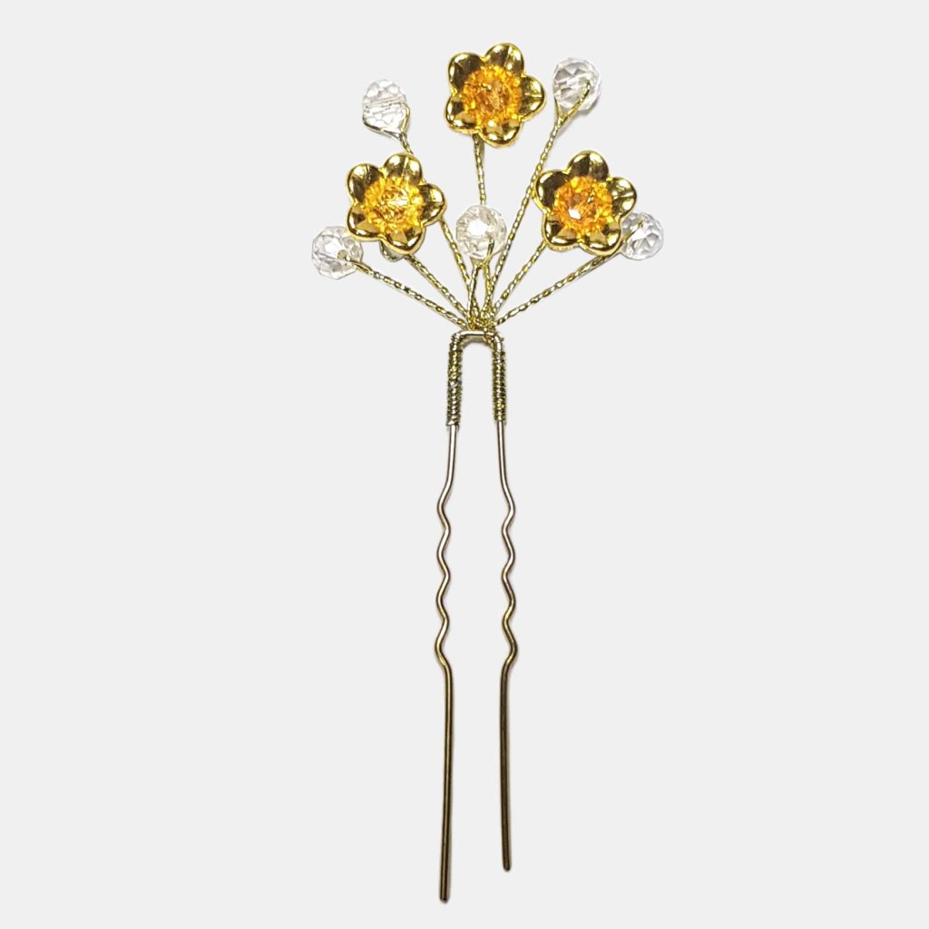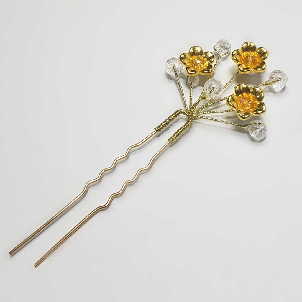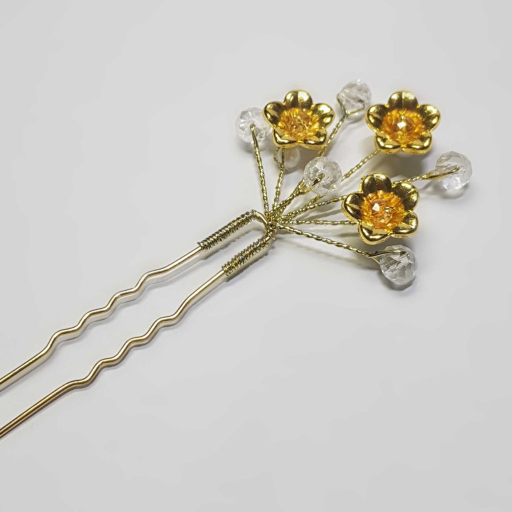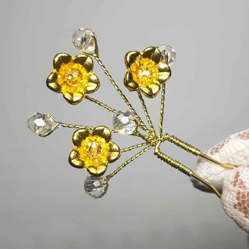 سنجاق شینیون طلایی کریستال و گل مدل SNJ1RE