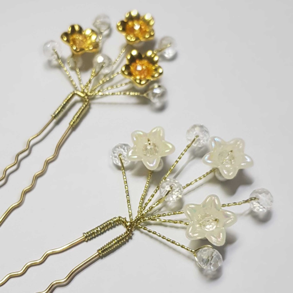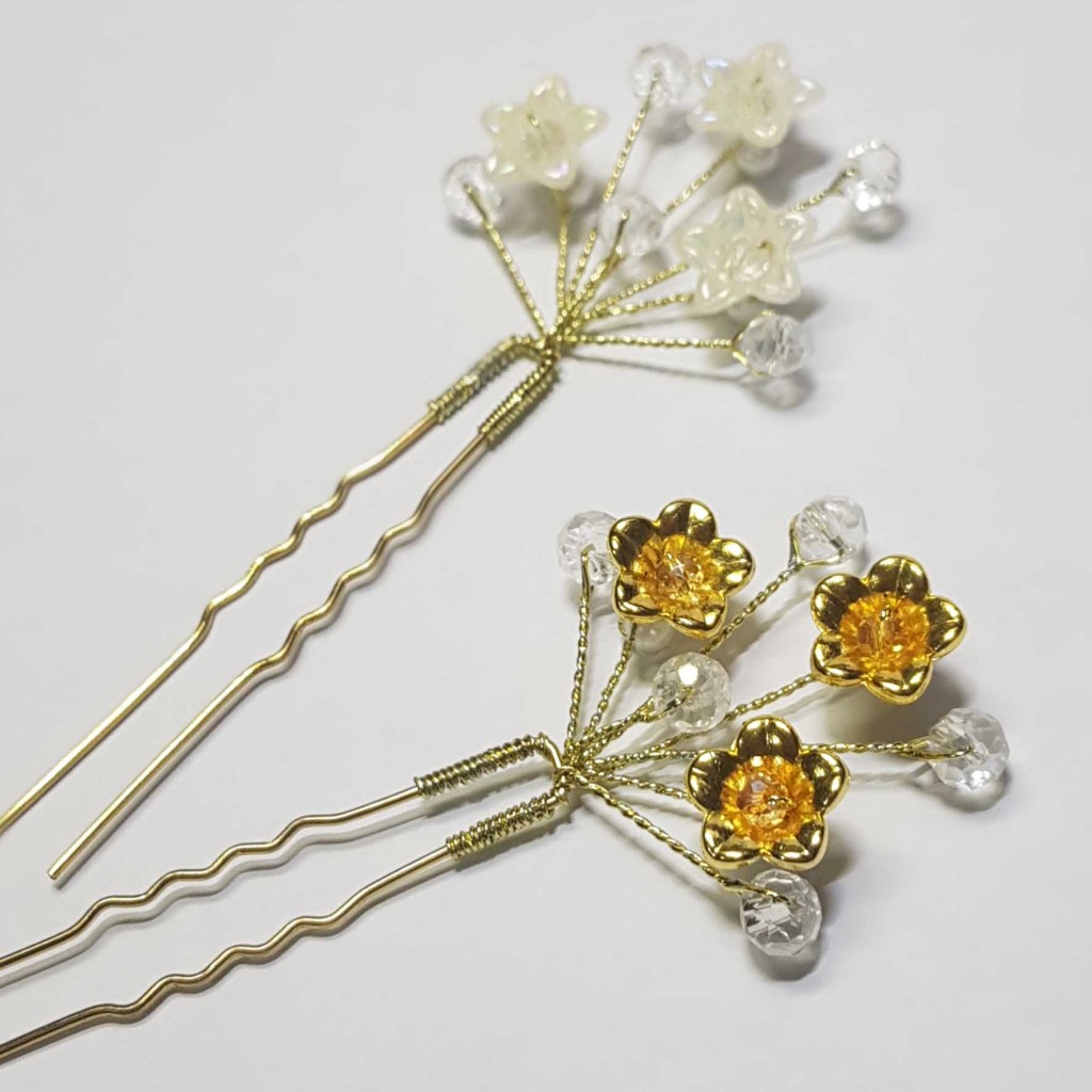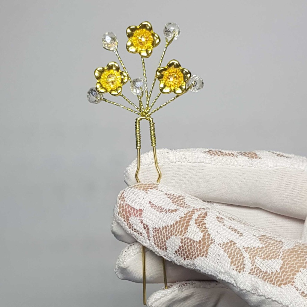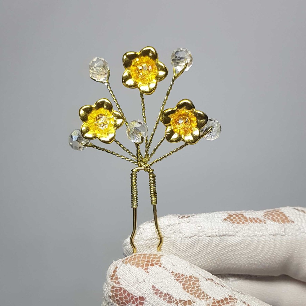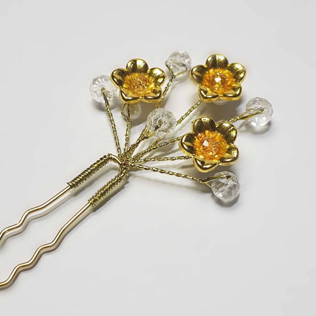 سنجاق شینیون طلایی کریستال و گل مدل SNJ1RE