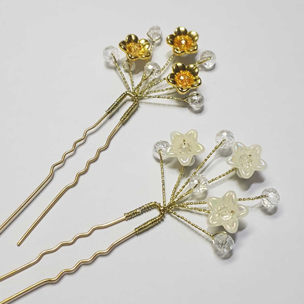 این محصول شامل یک عدد سنجاق شینیون با پایه سنجاق به رنگ طلایی است.