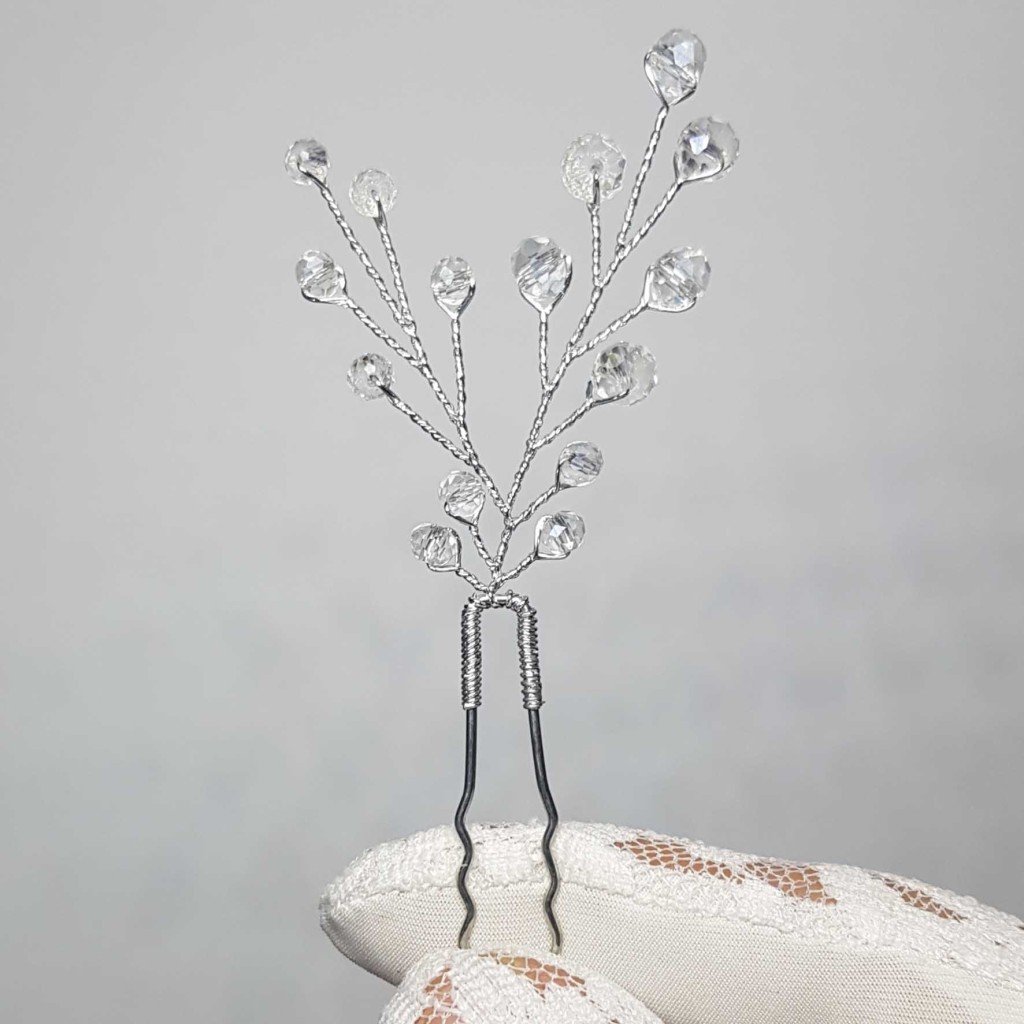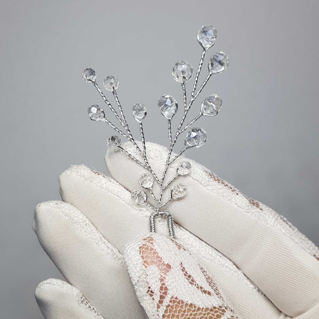 سنجاق شینیون کریستالی نقره ای مدل SNJ1TRB