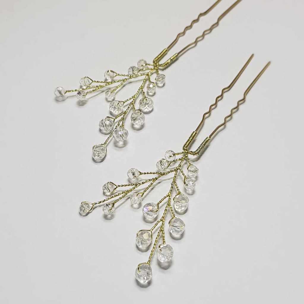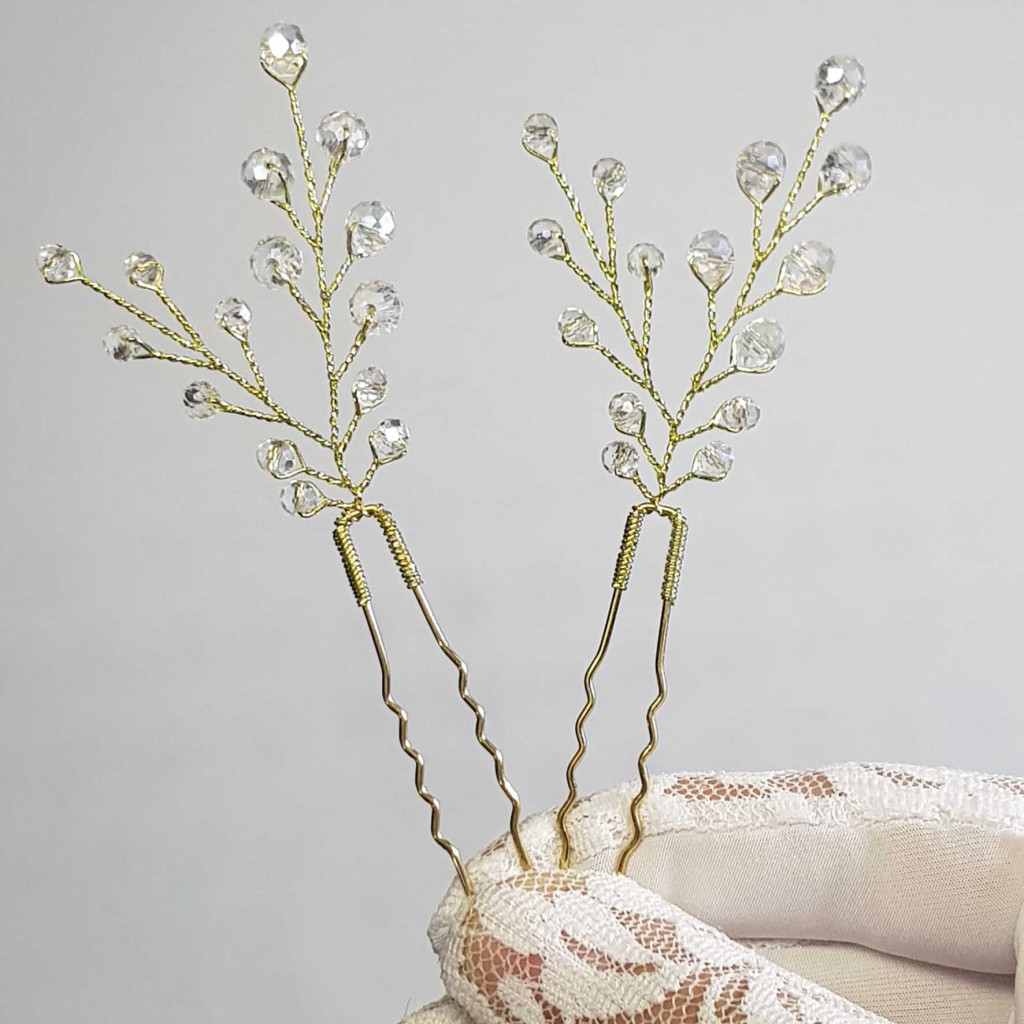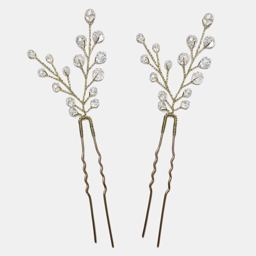 سنجاق شینیون طلایی کریستال مدل SNJ2NB (بسته 2عددی)