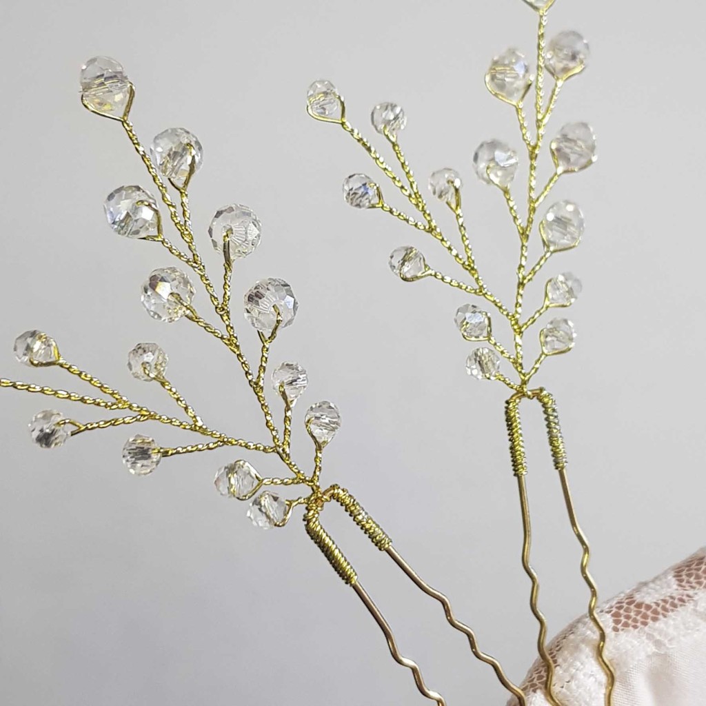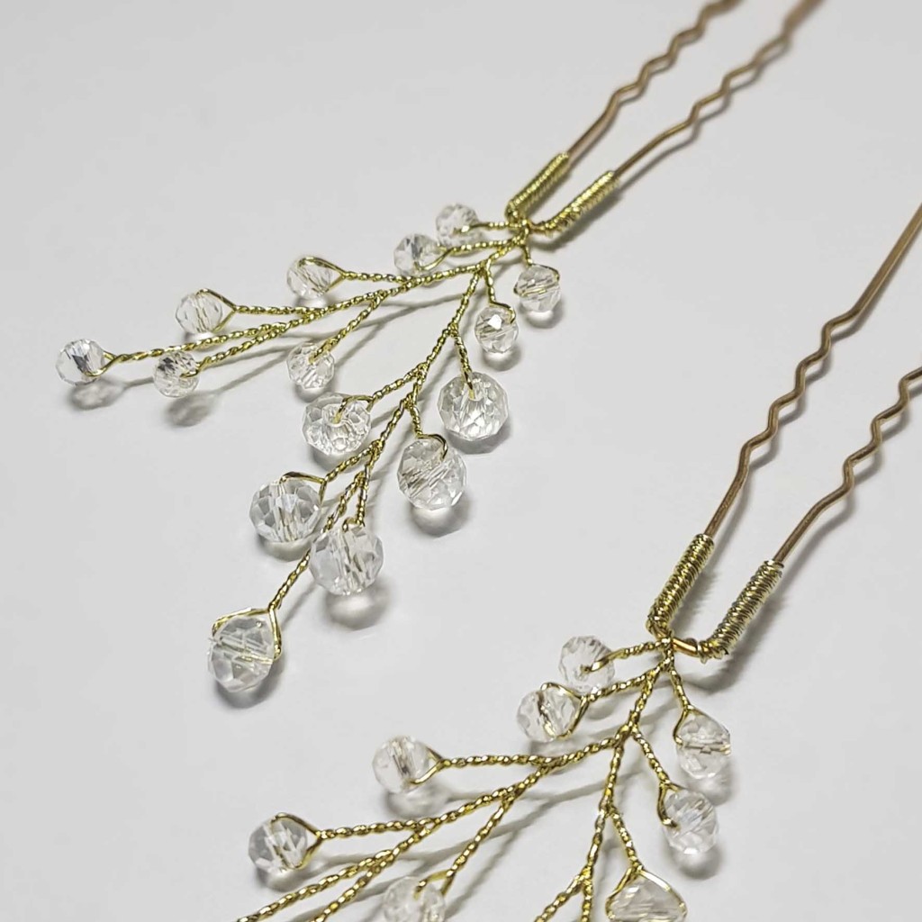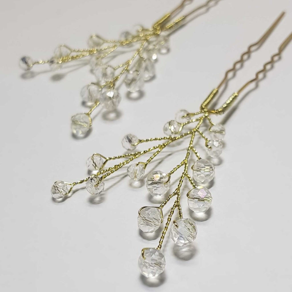 سنجاق شینیون طلایی کریستال مدل SNJ2NB (بسته 2عددی)