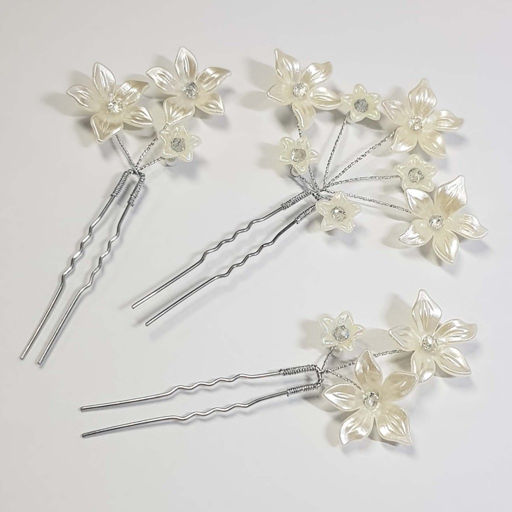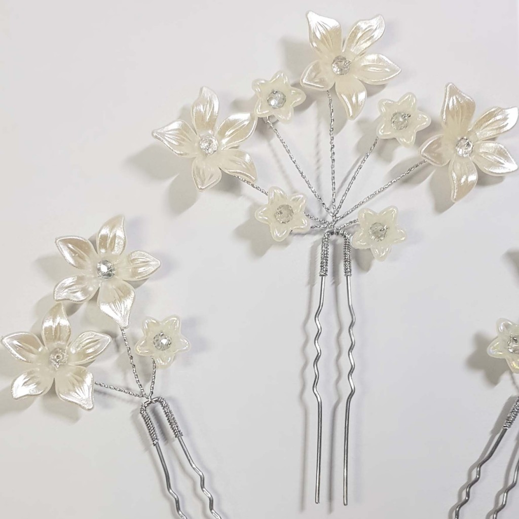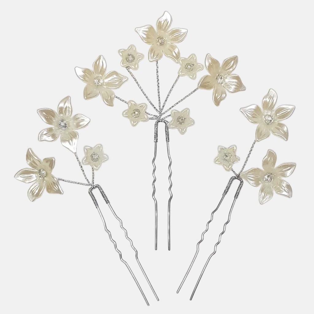 این محصول شامل 3 عدد سنجاق شینیون با پایه سنجاق به رنگ نقره ای است.