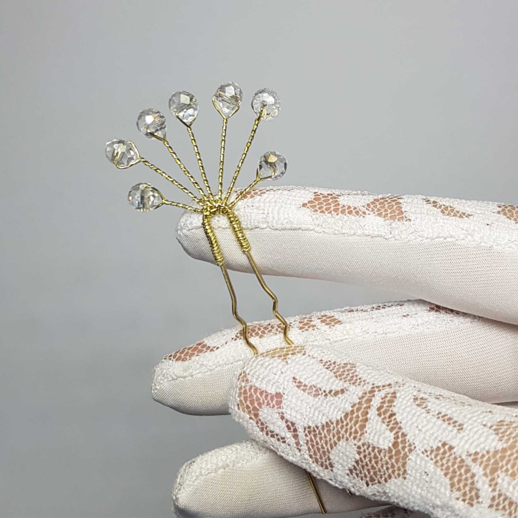 سنجاق شینیون کریستالی طلایی مدل SNJGBV
