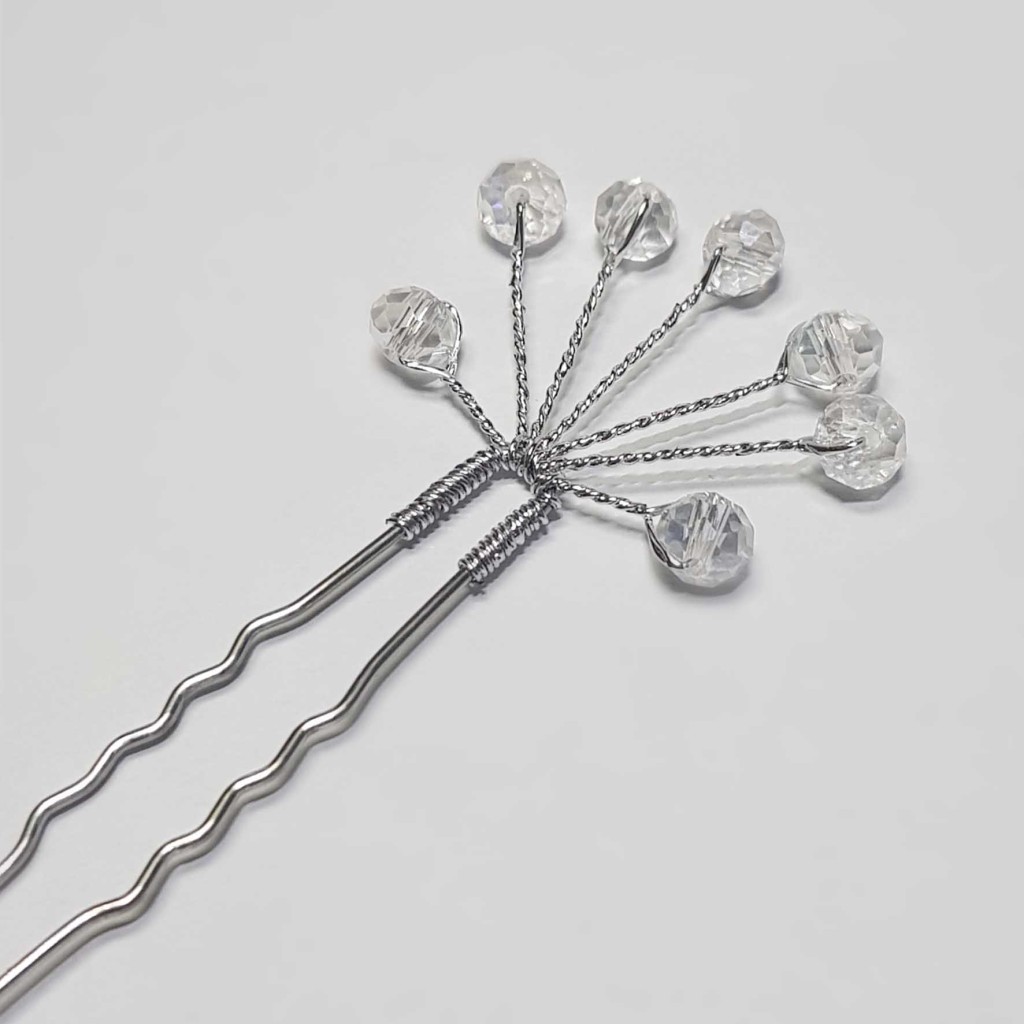 سنجاق شینیون کریستالی نقره ای مدل SNJGNG